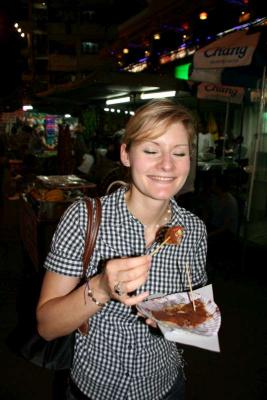 Nach dem Abstieg haben wir uns noch ein bisschen im Meer abgekühlt und abends auf dem Nightmarket die lokalen Spezialitäten verköstigt. Ich darf jetzt verkünden: Isa mag Schrimps!