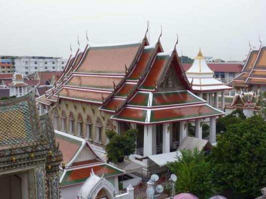 Gegenüber liegt der unserer Meinung schönere Wat Arun. Er besteht aus einigen begehbaren wunderschön verzierten Pagoden. Ausserdem wirkt er authentischer. Das mag daran liegen, dass er nicht so gut gepflegt wird wie sein Gegenüber...